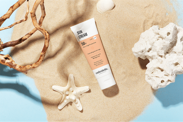 Overtuigd van een dagelijkse zonbescherming? Met de nieuwe SUN CREAM van Celestetic ziet jouw huid er niet alleen jonger uit, de zonnebrandcrème met een factor van 50+ bevat daarnaast tal van anti-aging ingrediënten die jouw huid er extra jong doen utizien. Denk maar aan hyaluronzuur voor meer hydratatie en volume, Bètaglucaan die de huid beschermt tegen agressies van buitenaf en de genezing van de huid stimuleert, Vitamine E die komaf maakt met pigmentvlekken en fijne lijntjes en tenslotte Karité boter die de huid extra voedt en hydrateerd.