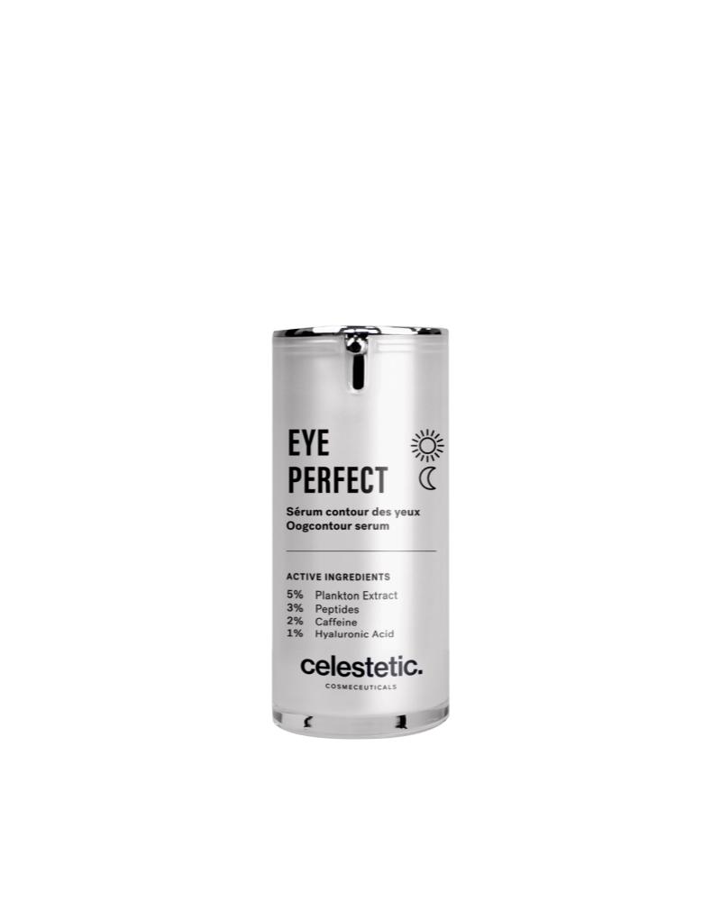 De oogserum op basis van hyaluronzuur, peptiden en cafeïne, de EYEPERFECT voor het gladstrijken van rimpels en kraaienpootjes en verhogen van de stevigheid .