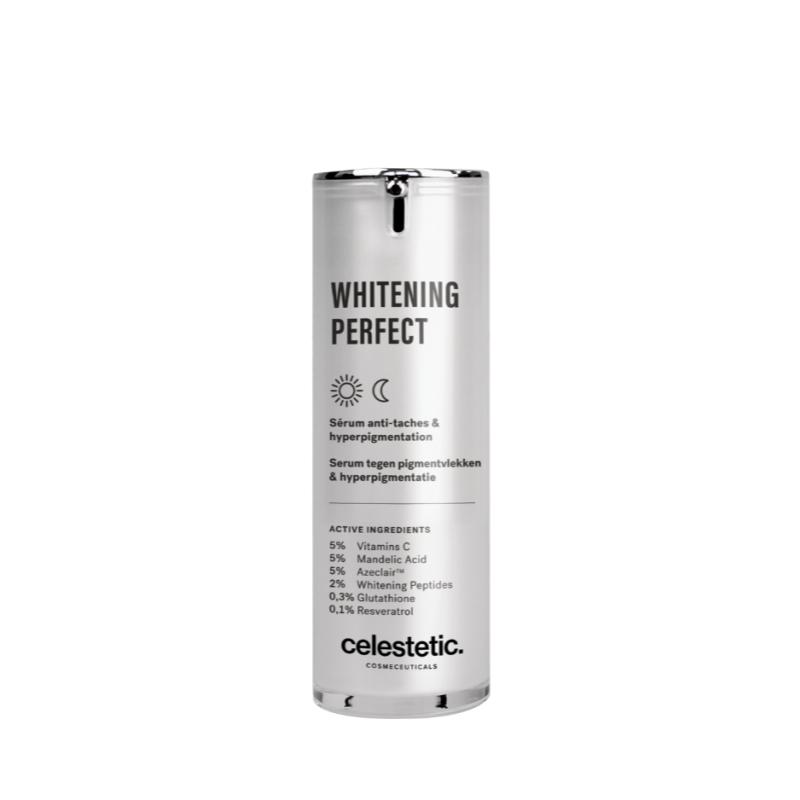 Een ultra-geconcentreerde oplossing met actieve bestanddelen die helpen bij de vermindering van alle soorten vlekjes en de egalisering van de teint. Het Whitening Perfect-serum werd ontwikkeld met een driedubbele werking voor een maximale doeltreffendheid: